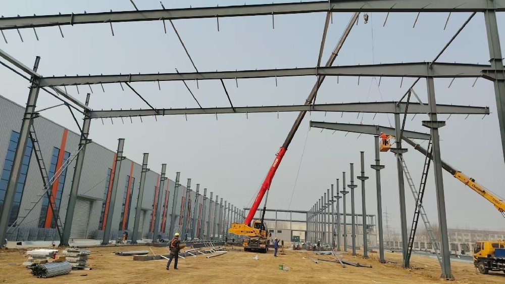 2022年公司新增車間屋頂光伏發(fā)電裝置,實現(xiàn)**用電,同時企業(yè)用電成本大大減少。車間有**制造裝備有2臺激光切割機(jī),多套龍門焊機(jī),8臺自動焊接機(jī)械手,20臺手工焊機(jī),CZ檁條加工機(jī),附件折彎機(jī),8個噴頭通過式拋丸機(jī),700平鋼構(gòu)件防腐噴涂車間,鋼構(gòu)加工精度高,自動化程度高。